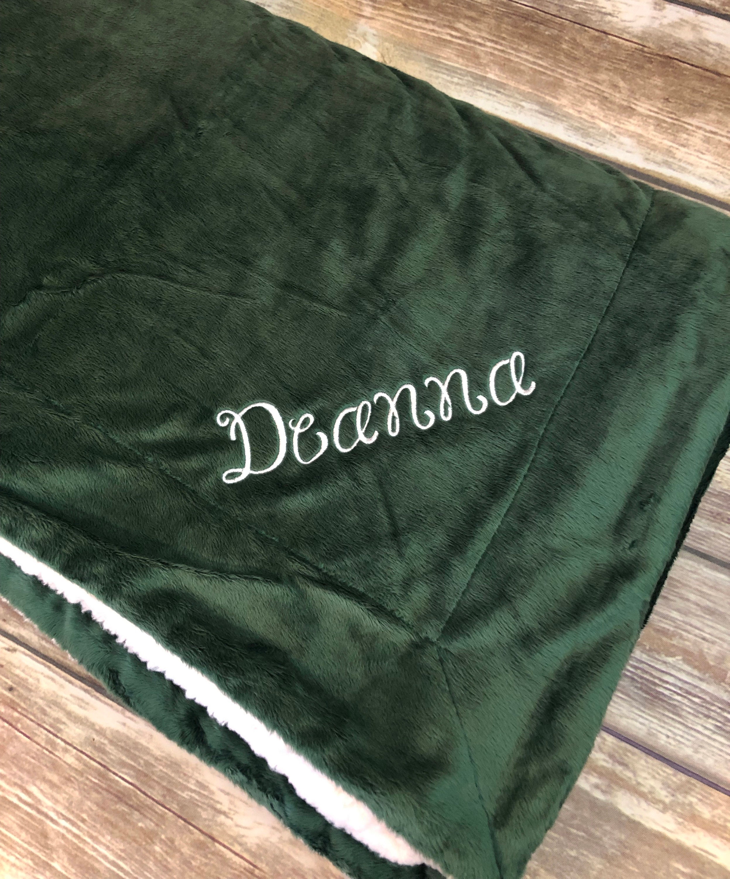 Up to 4 cash back Our super soft personalized Sherpa Blanket is embroidered with a single large initial in brown thread. Up to 4 cash back Script Initial Personalized Sherpa Blanket. 50 x 60 One side faux micro mink other side 100 percent lambs wool Sherpa.
